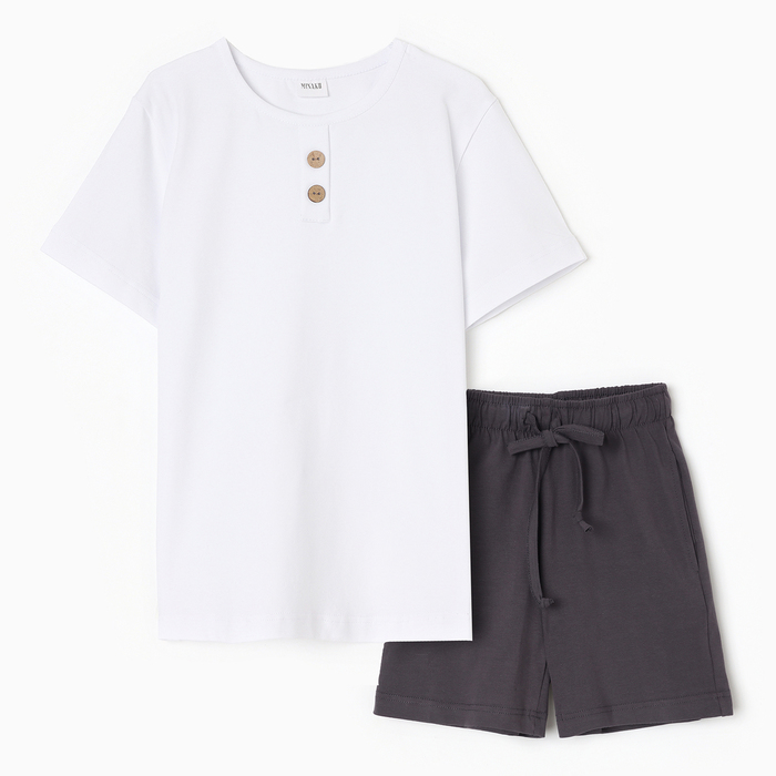 Комплект для мальчика (футболка, шорты) MINAKU, белый/графит, рост 152 см — Характеристики