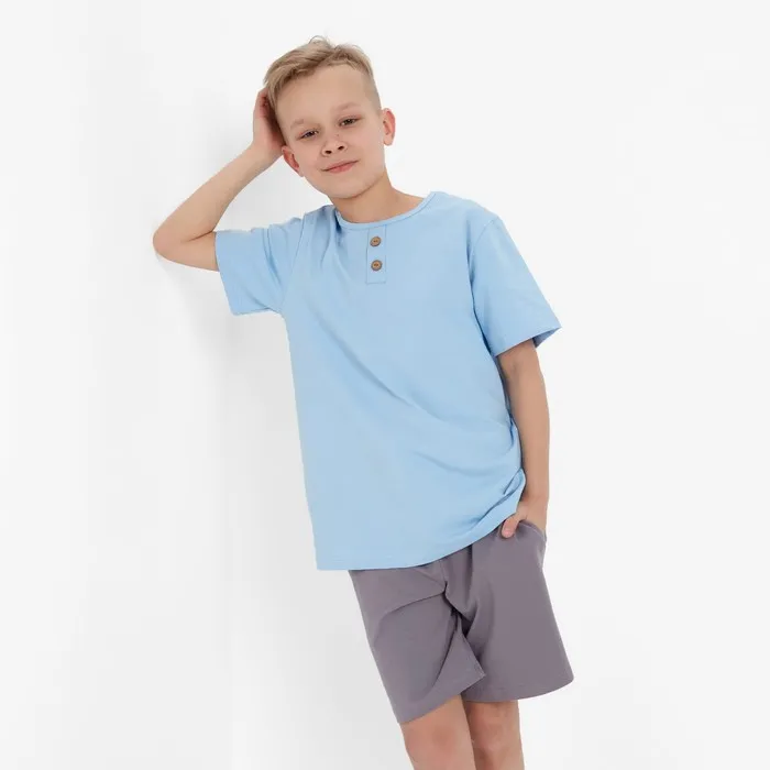Комплект для мальчика (футболка, шорты) MINAKU, светло-голубой/серый, рост 146 см — Характеристики