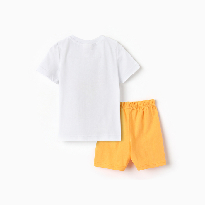 Комплект для мальчика «Геометрические фигуры» (футболка и шорты), белый, оранжевый, рост 110-116 см — Характеристики