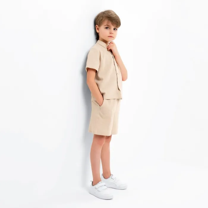 Комплект для мальчика (рубашка, шорты) MINAKU, бежевый, рост 116 см — Характеристики