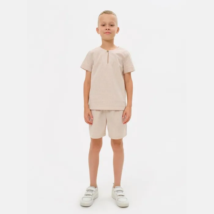 Комплект для мальчика (рубашка, шорты) MINAKU: Cotton Collection, бежевый, рост 134 см — Характеристики