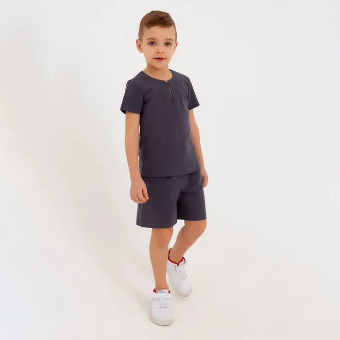 Комплект для мальчика (рубашка, шорты) MINAKU: Cotton Collection, серый, рост 128 см — Характеристики