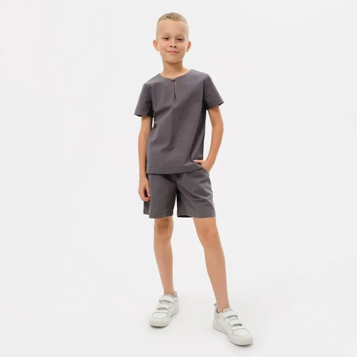 Комплект для мальчика (рубашка, шорты) MINAKU: Cotton Collection серый, рост 158 см — Характеристики
