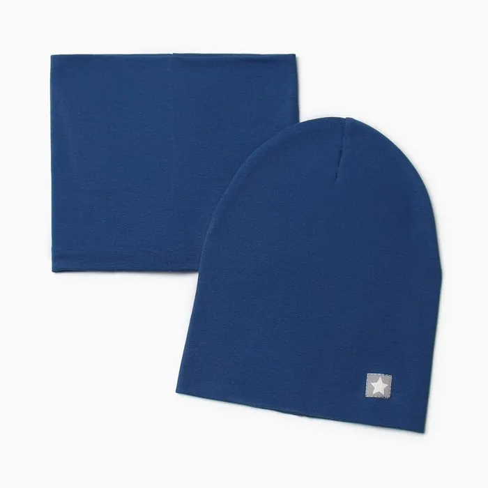 Комплект для мальчика (снуд и шапка), цвет индиго, размер 46-50
