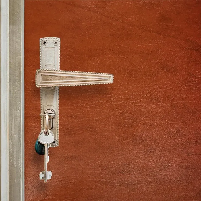 - Искусственная кожа придаёт двери современный и аккуратный вид.