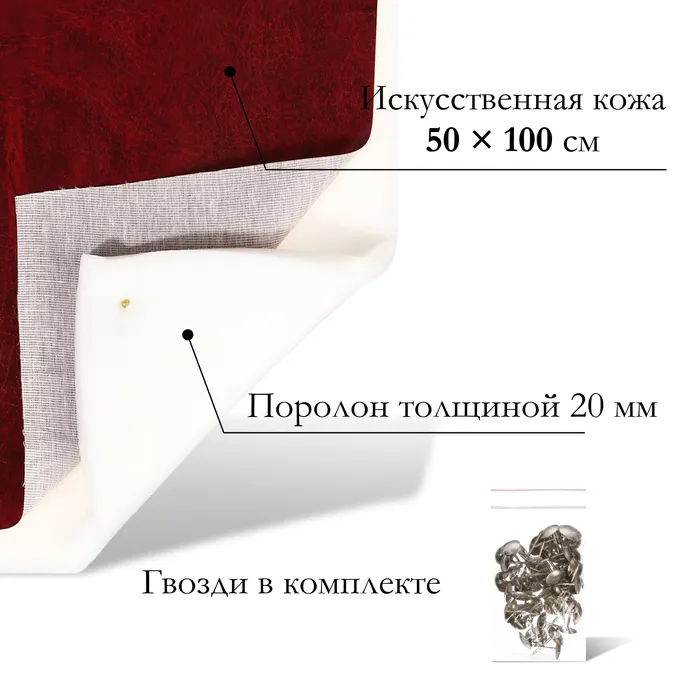 Комплект для перетяжки мебели, 50 × 100 см: иск.кожа, поролон 20 мм, бордовый — Характеристики