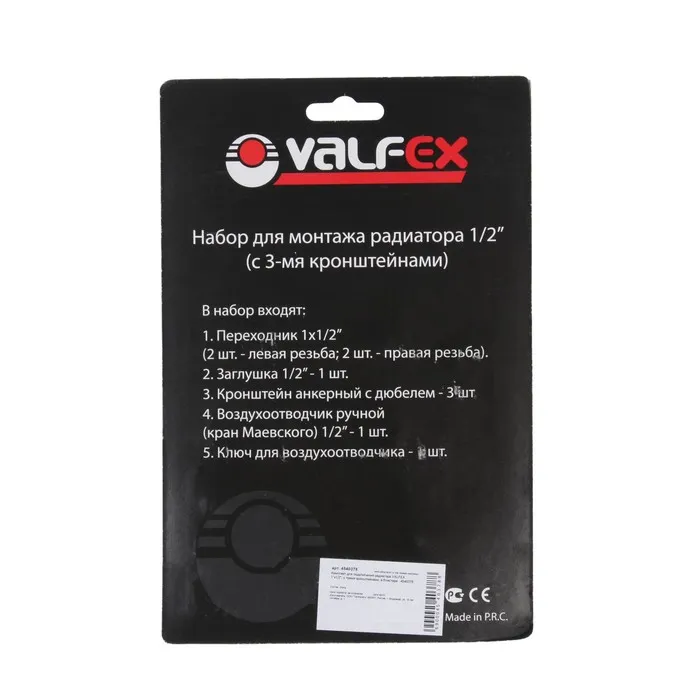 Комплект для подключения радиатора VALFEX, 1"x1/2", с тремя кронштейнами, в блистере