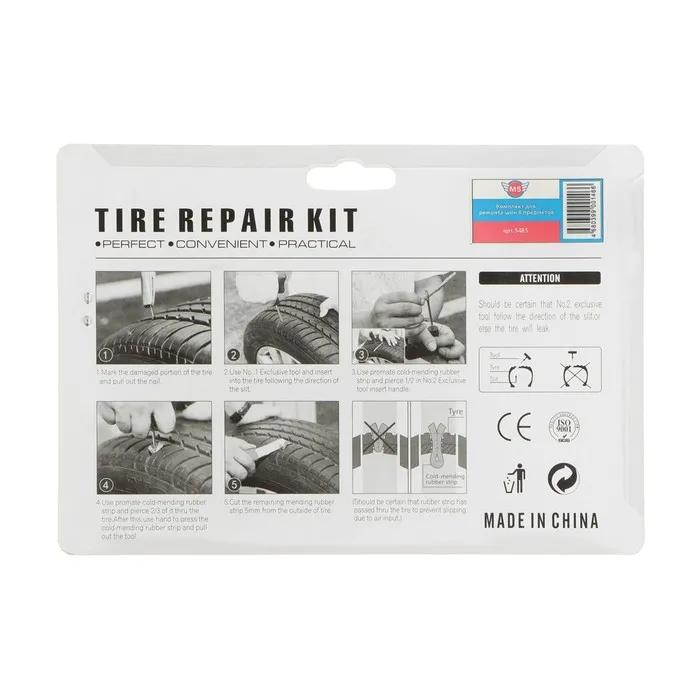 Комплект для ремонта шин M5 состоит из 8 предметов и предназначен для быстрого устранения проколов в автомобильных шинах. С помощью этого набора вы сможете быстро и эффективно устранить прокол в автомобильной шине, обеспечив безопасность и комфорт во время поездки.