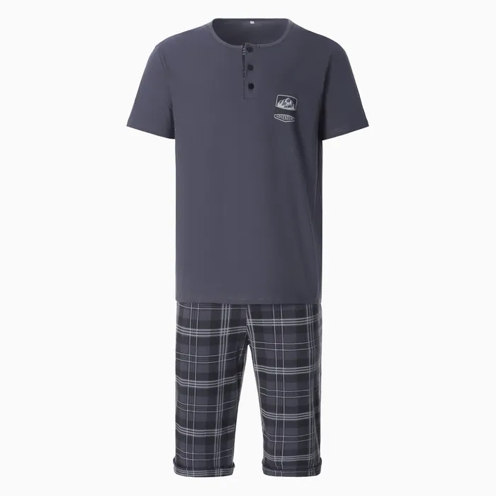 Пижама мужская (футболка/шорты), цвет серо-голубой, размер 48