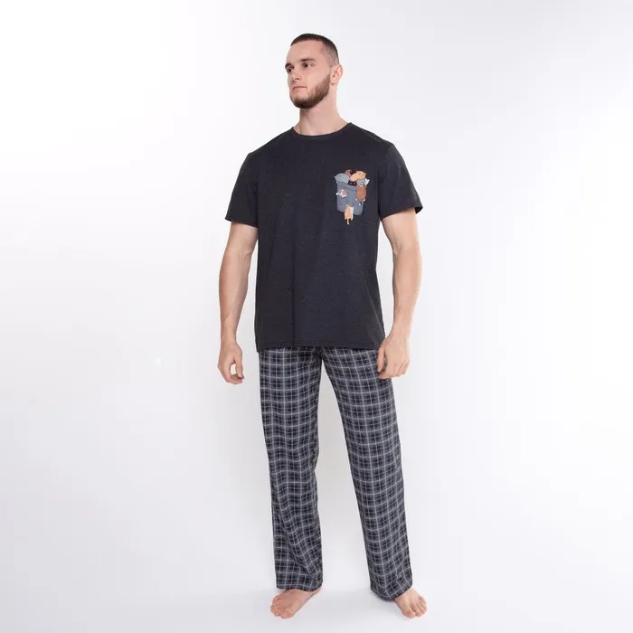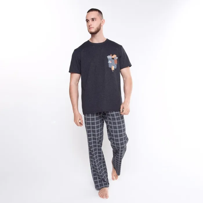 Комплект домашний мужской (футболка/брюки) «Дружная семейка», цвет антрацит, размер 58 — Характеристики
