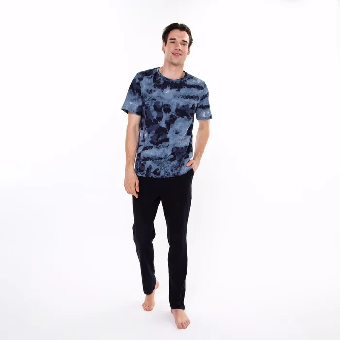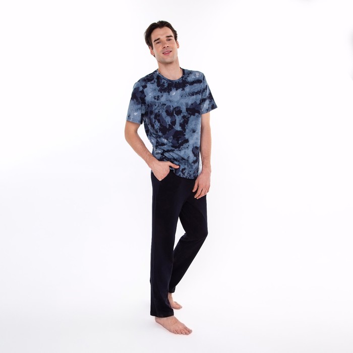 Комплект домашний мужской (футболка/брюки), цвет серый/чёрный, размер 56