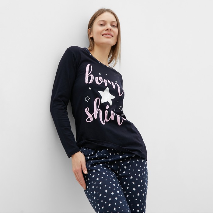 Комплект домашний женский (джемпер и брюки), цвет темно-синий, размер 46
