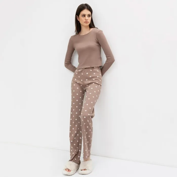 Комплект женский (лонгслив, брюки), цвет коричневый, размер 48