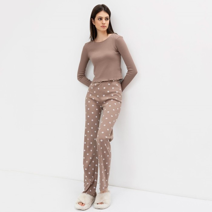 Комплект женский (лонгслив, брюки), цвет коричневый, размер 46