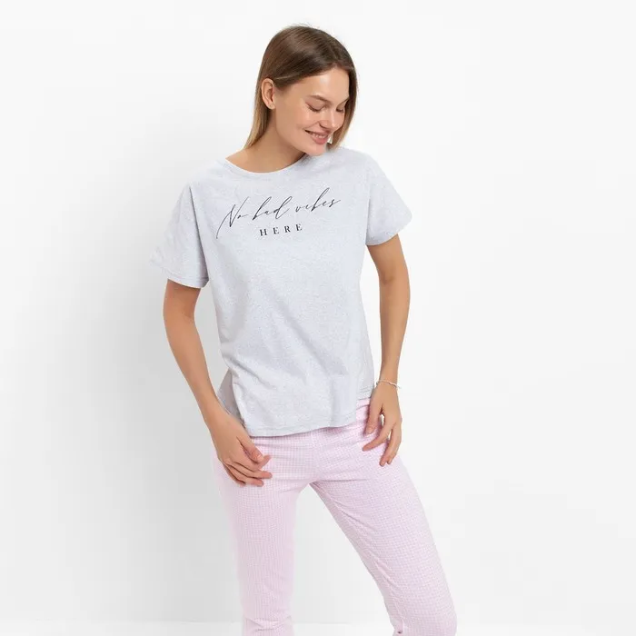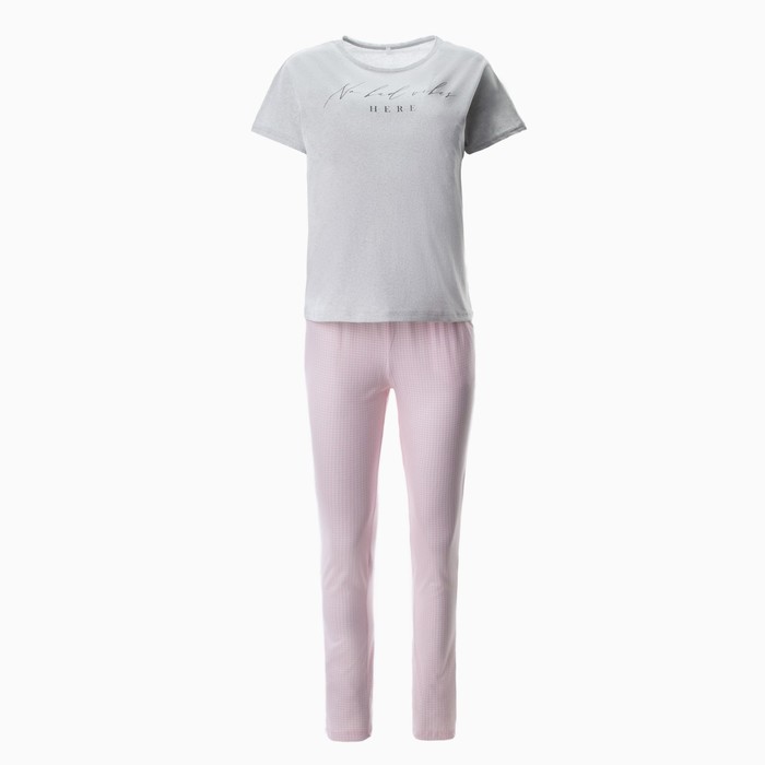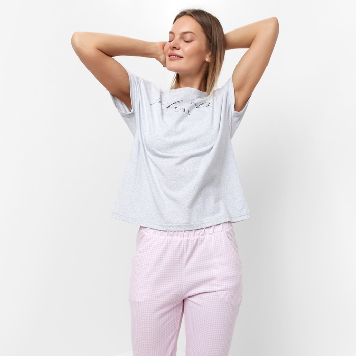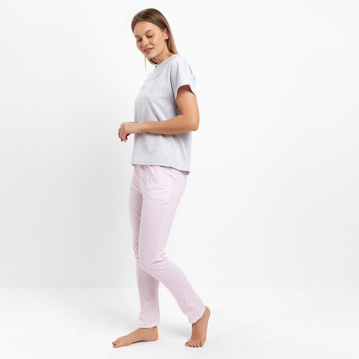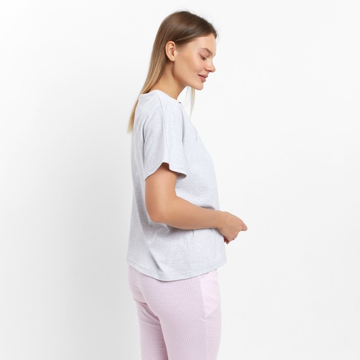Комплект домашний женский (футболка/брюки), цвет серый, размер 48