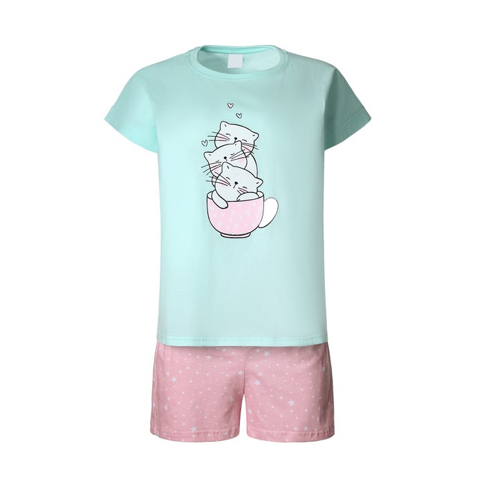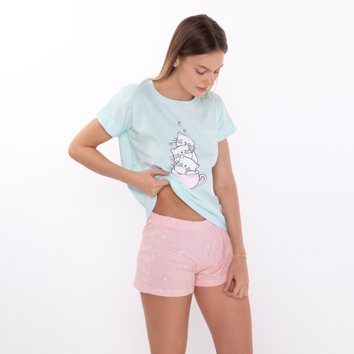 Комплект домашний женский «Кошки»(футболка/шорты), цвет мята/розовый, размер 44 — Характеристики