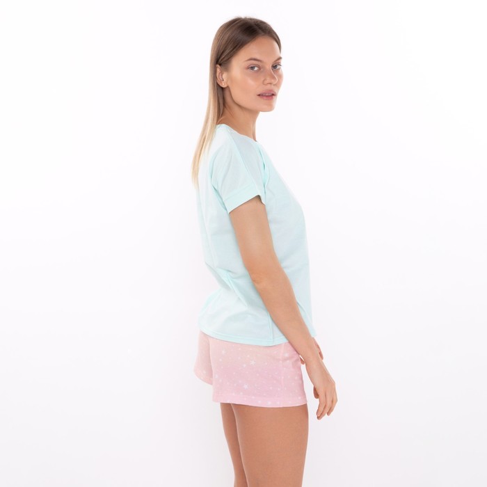 Комплект домашний женский «Кошки»(футболка/шорты), цвет мята/розовый, размер 44