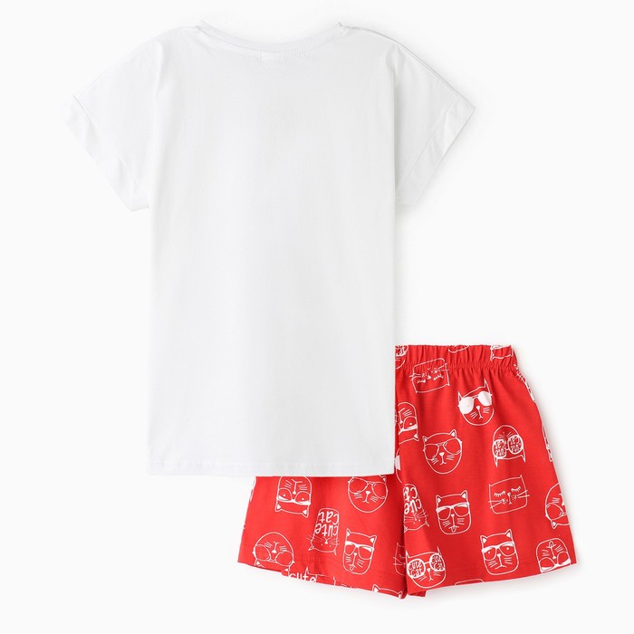 Комплект домашний женский "Котенок в стакане" (футболка/шорты), цвет белый/красный, размер 52