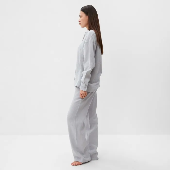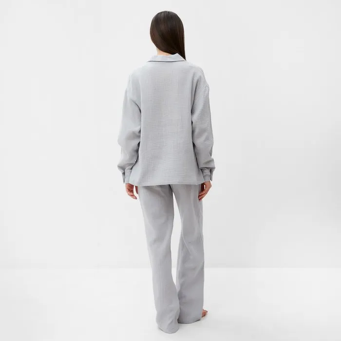 Женский домашний костюм от KAFTAN сочетает в себе комфорт и стиль. Серая рубашка и брюки созданы из мягкого муслина, который приятно облегает тело. Этот комплект подходит для любого сезона благодаря лёгкому хлопковому материалу, плотность которого составляет 120 г/м². Это значит, что вам будет комфортно в любое время года.