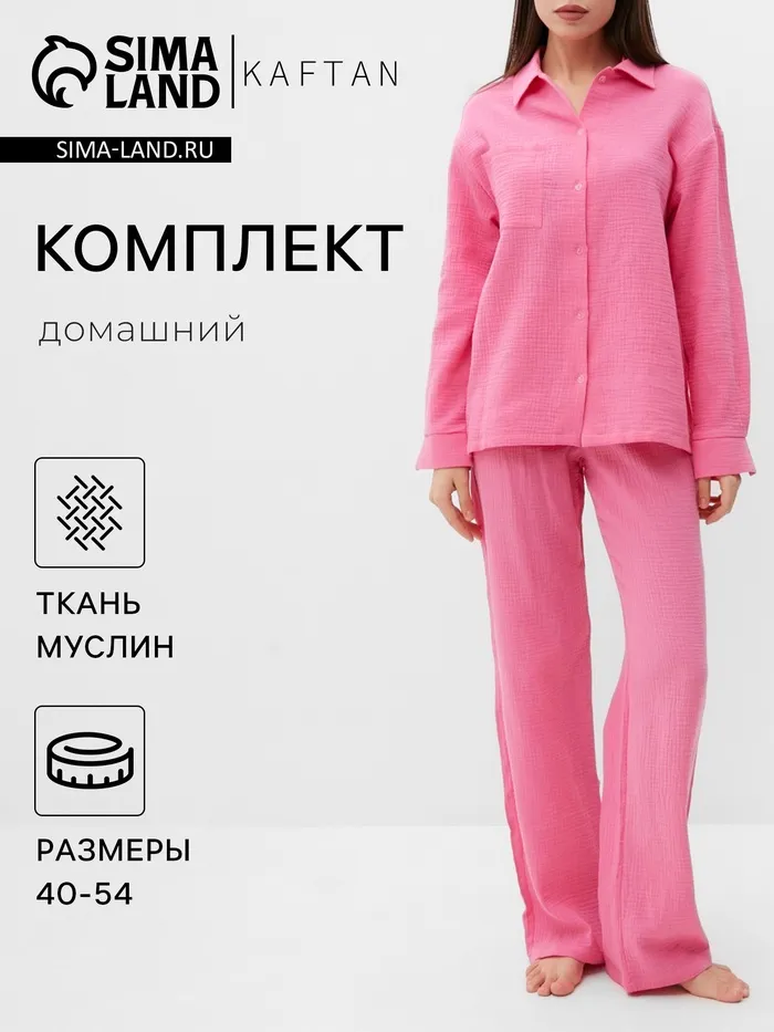 Комплект домашний женский (рубашка, брюки) KAFTAN Basic размер 52-54, розовый — Характеристики