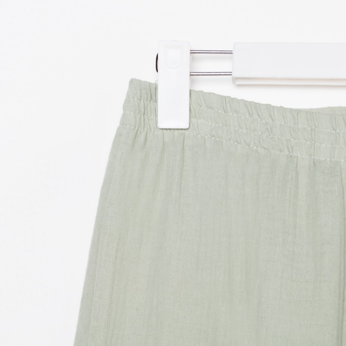 Женский домашний костюм включает в себя рубашку и брюки из муслина нежного зелёного цвета. Этот набор станет отличным выбором для комфортного пребывания дома в любое время года.