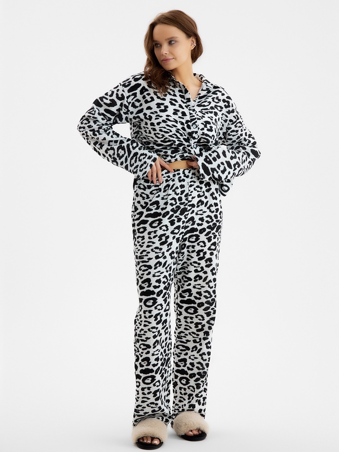 - Яркий леопардовый принт делает комплект модным акцентом в домашнем гардеробе.