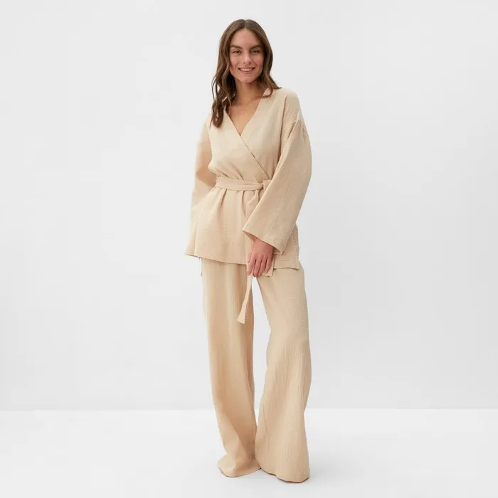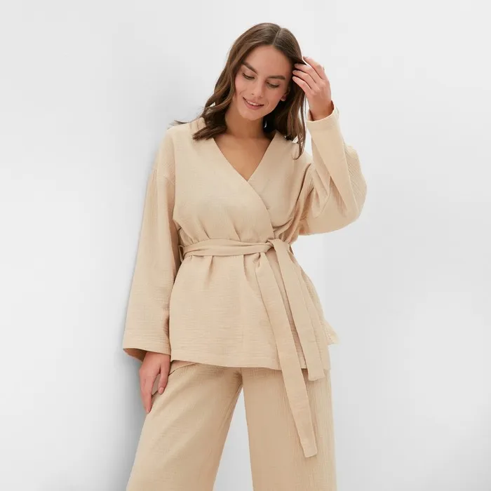 Комплект домашний женский (рубашка на запах, брюки) KAFTAN Basic размер 40-42, бежевый — Характеристики