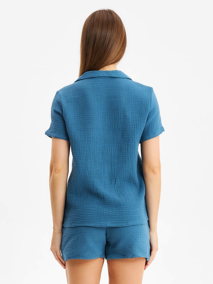 Женский домашний костюм из рубашки и шорт от KAFTAN Basic — идеальный выбор для комфортного отдыха. Изделие выполнено из мягкого хлопкового муслина, обеспечивающего приятное ощущение на коже и лёгкость в уходе.