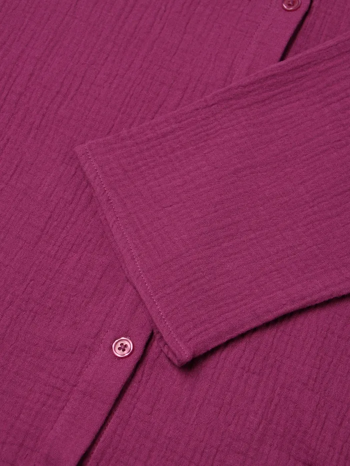 - Отложной воротник и застёжка на пуговицы придают рубашке классический вид.