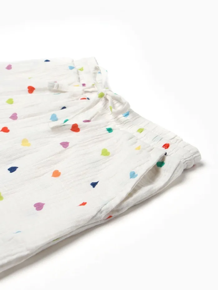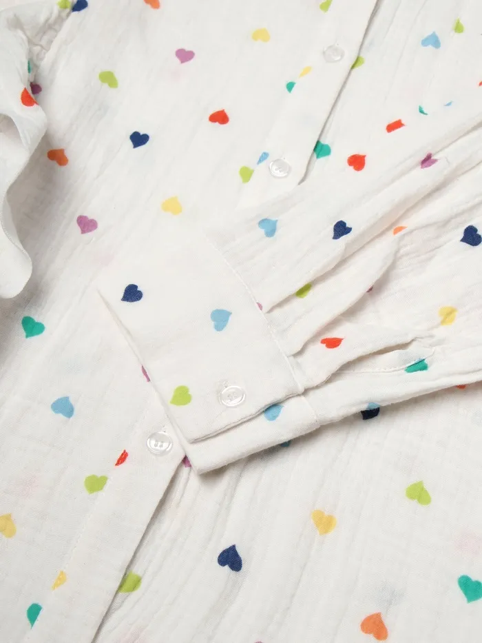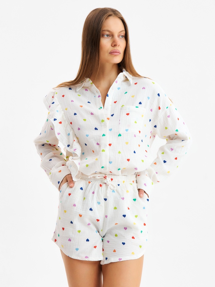 Домашний костюм с рубашкой и шортами — ваш идеальный выбор для уюта и комфорта. Белый цвет с сердечками добавит нотку романтики в ваше настроение, а натуральный хлопок сделает одежду мягкой и приятной к телу.