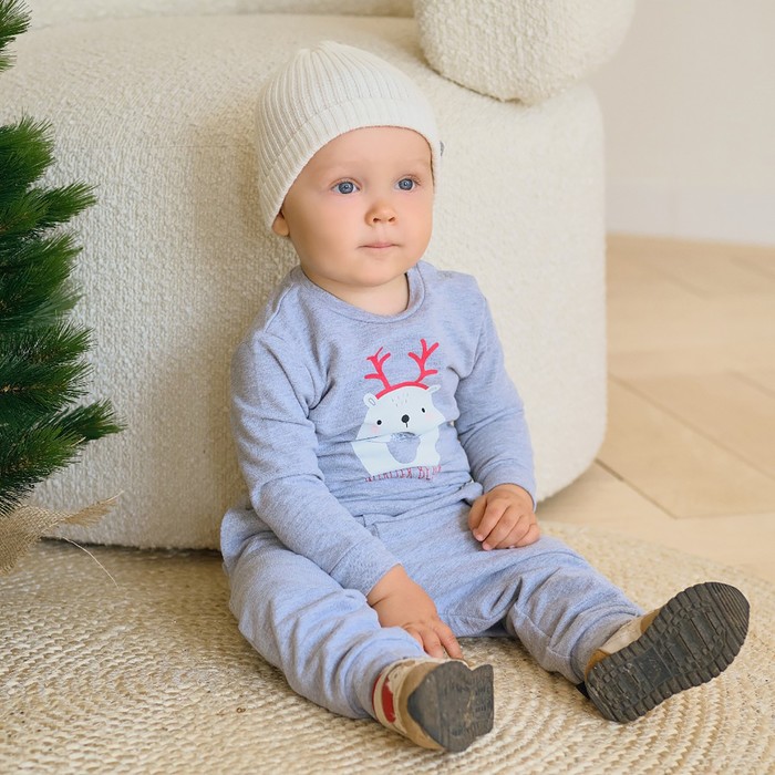 Комплект: джемпер и брюки Крошка Я "Merry Xmas", рост 62-68 см, цвет серый — Характеристики