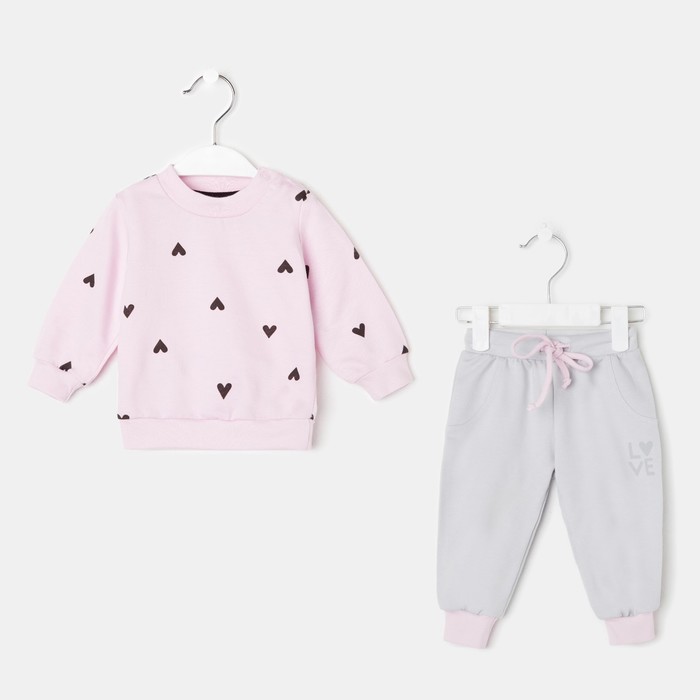 Комплект: джемпер и брюки Крошка Я «Сердечки», цвет розовый/серый, рост 80-86 см — Характеристики