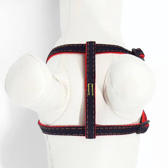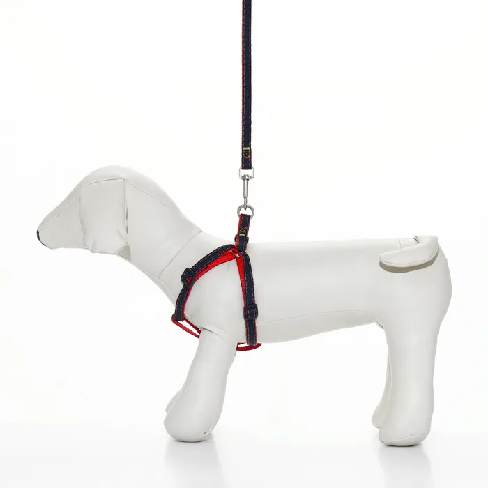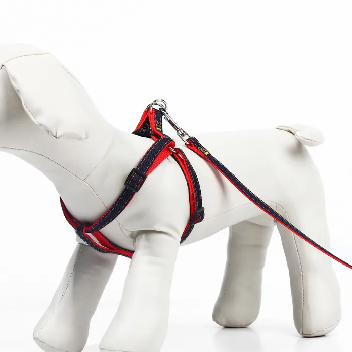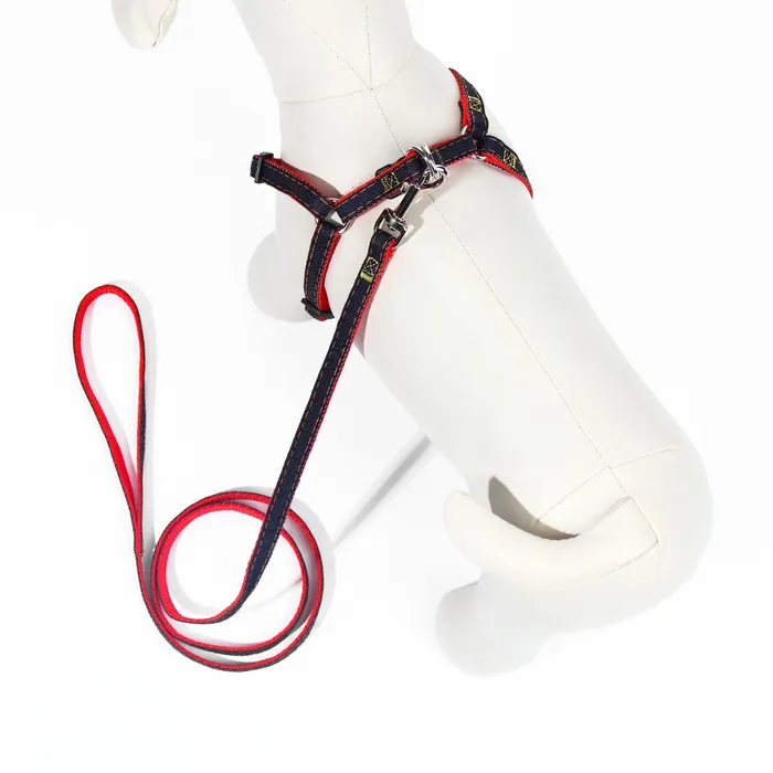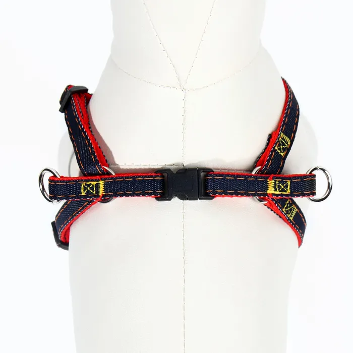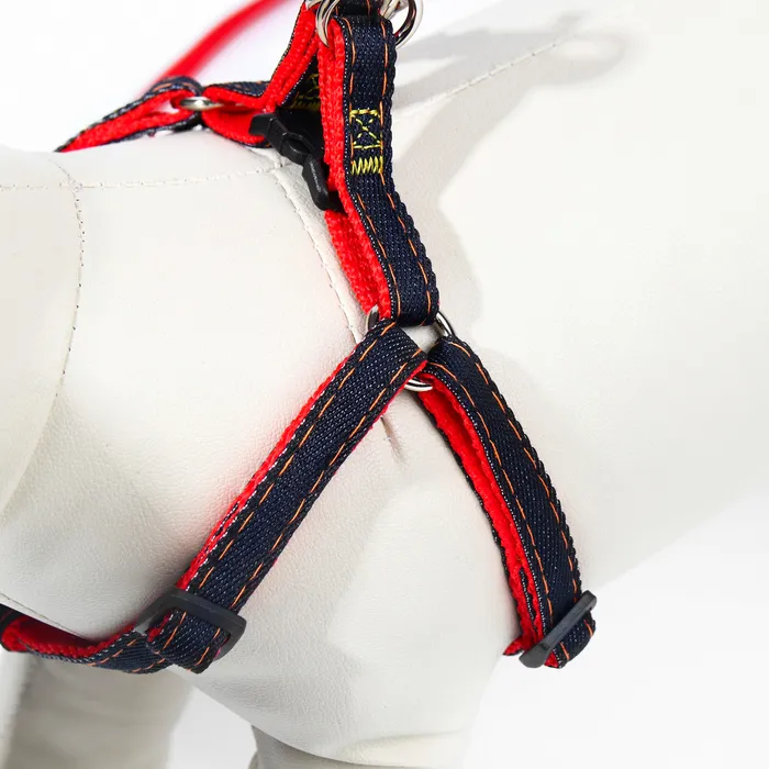 Шлейка "Джинс" с красным подкладом - это сочетание стиля и удобства, которое подчеркнет индивидуальность вашего четвероногого друга.