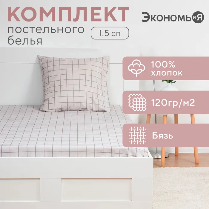 Комплект Экономь и Я «Клетка»: Простыня 145х214 см, наволочка 70х70 см, бязь, 100% хлопок — Характеристики