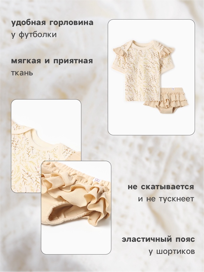 Комплект (футболка и шорты) детский MINAKU "Nature", цвет бежевый, рост 62-68 см — Характеристики