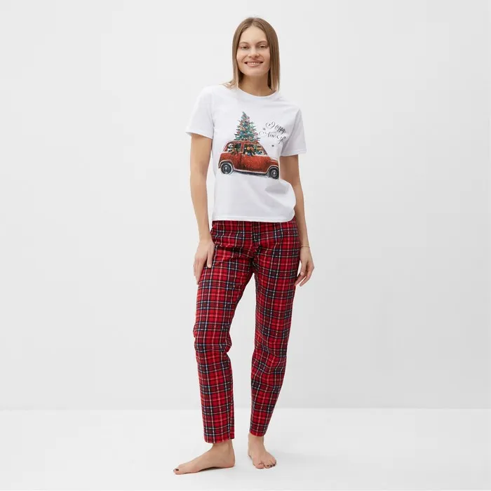 Комплект (футболка,брюки) домашний женский, цвет белый/красная клетка, р-р 44 — Характеристики