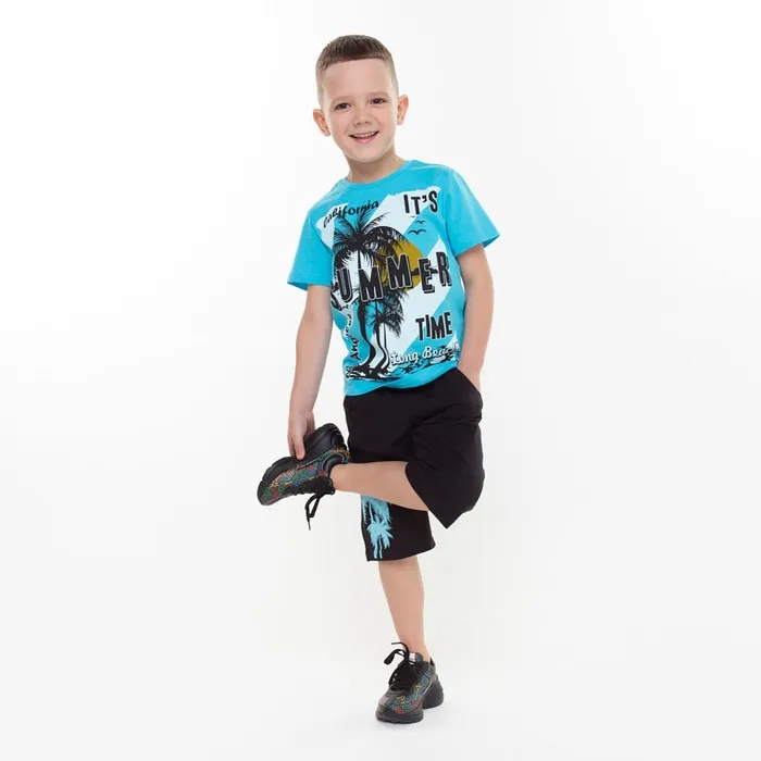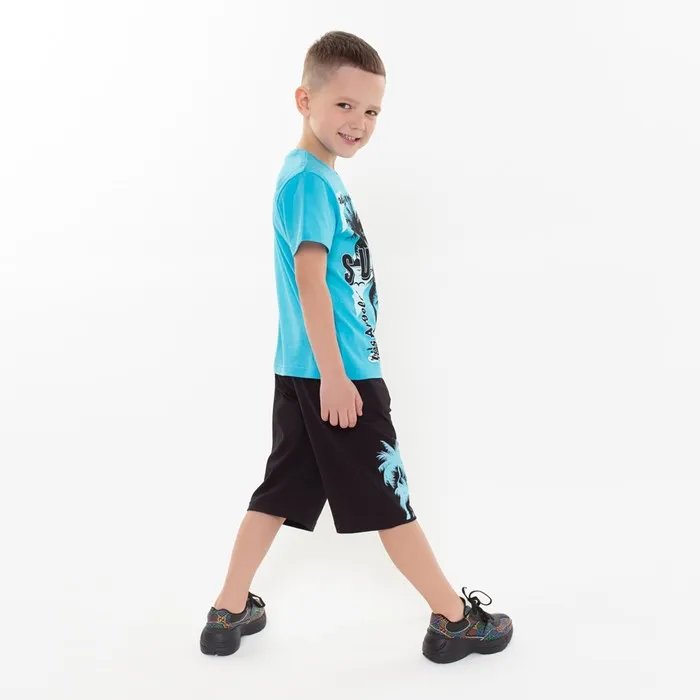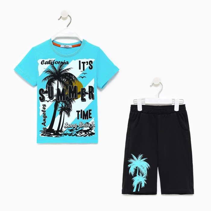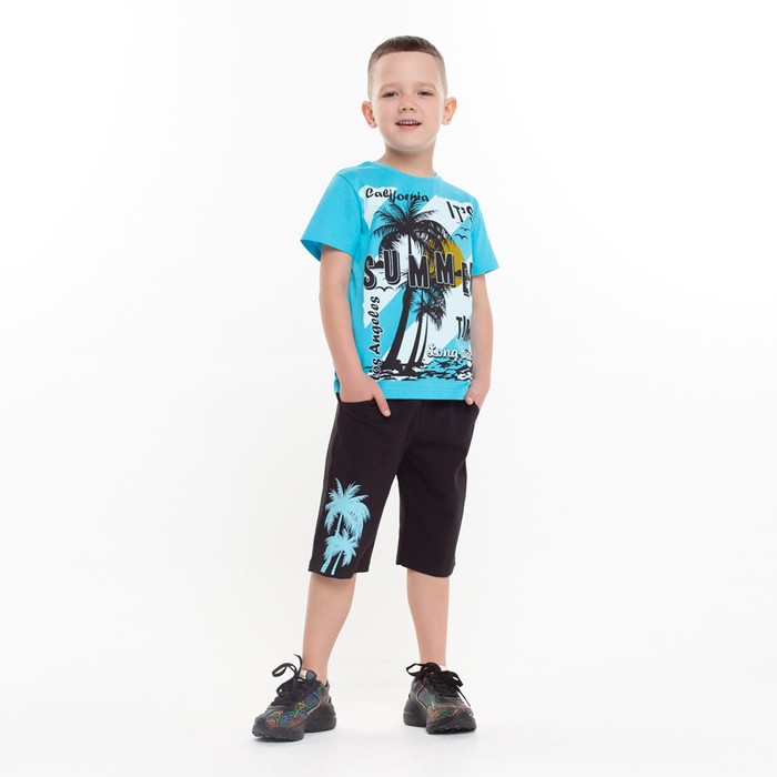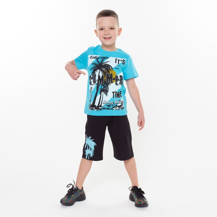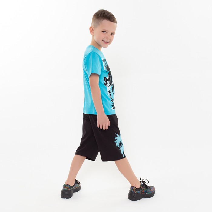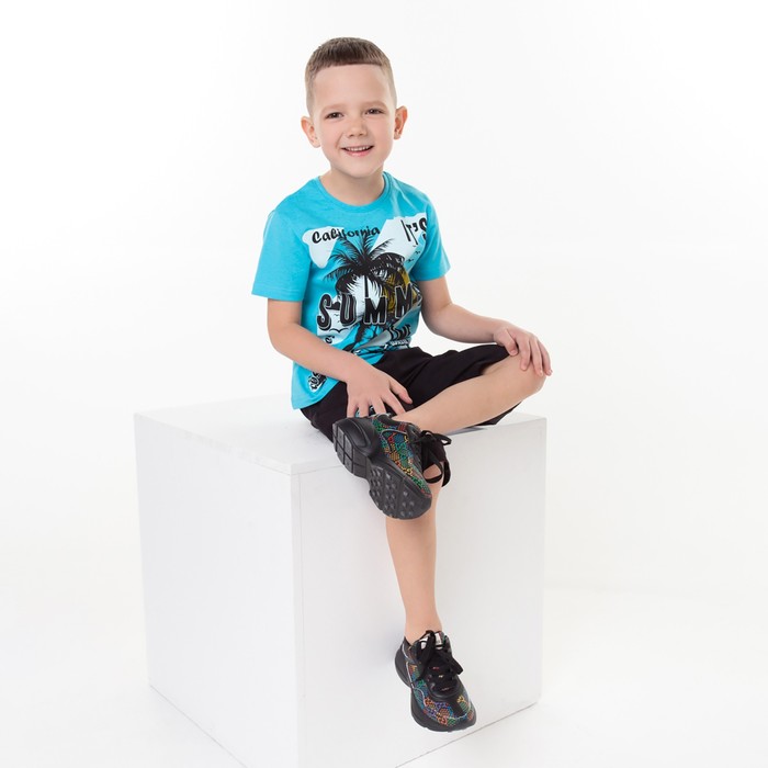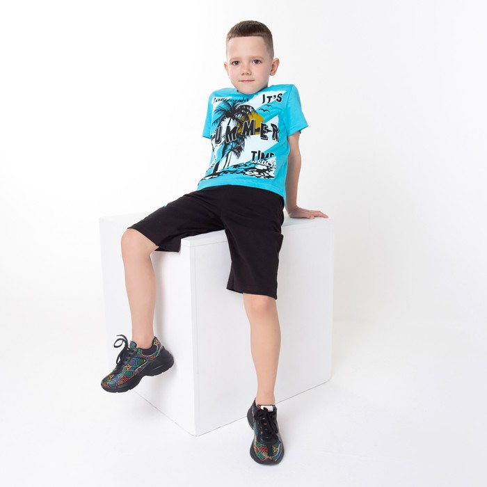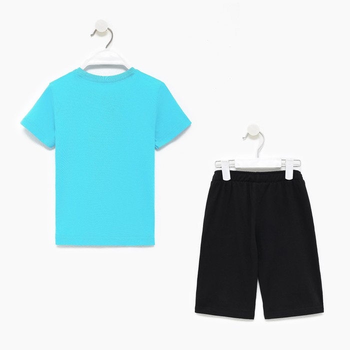 Комплект (футболка/шорты) для мальчика, цвет бирюзовый/чёрный, рост 128 — Характеристики