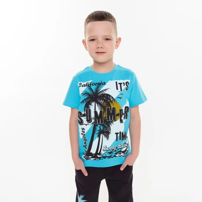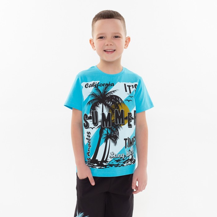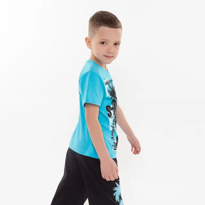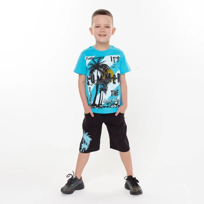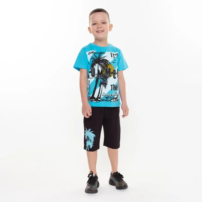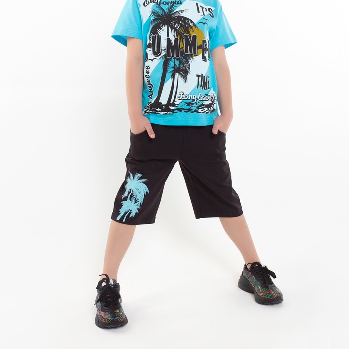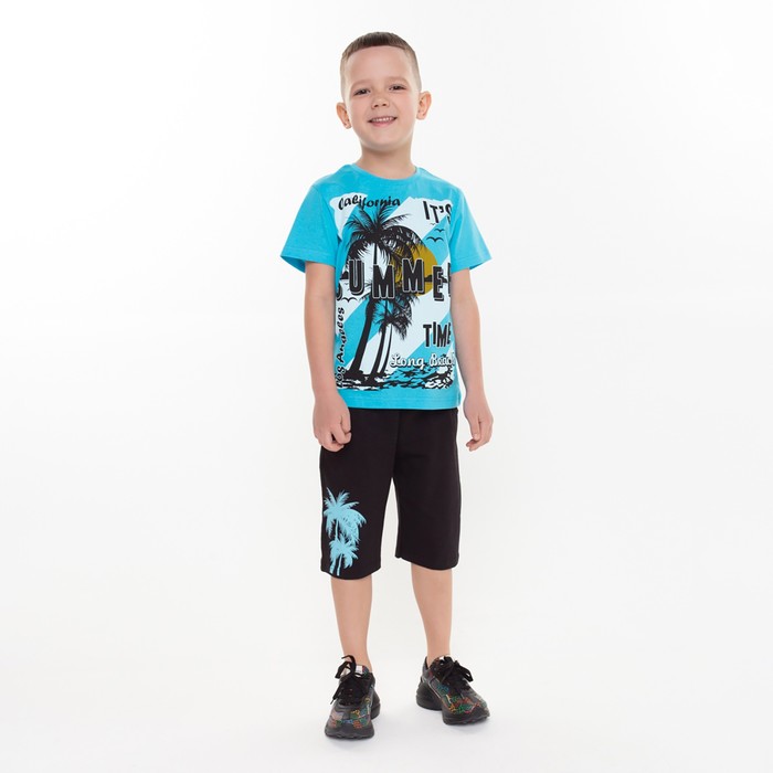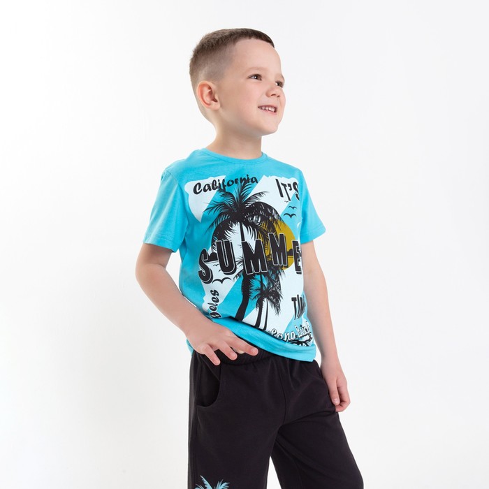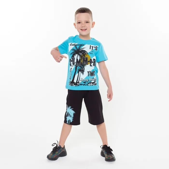 Комплект (футболка/шорты) для мальчика, цвет бирюзовый/чёрный, рост 128 — Характеристики
