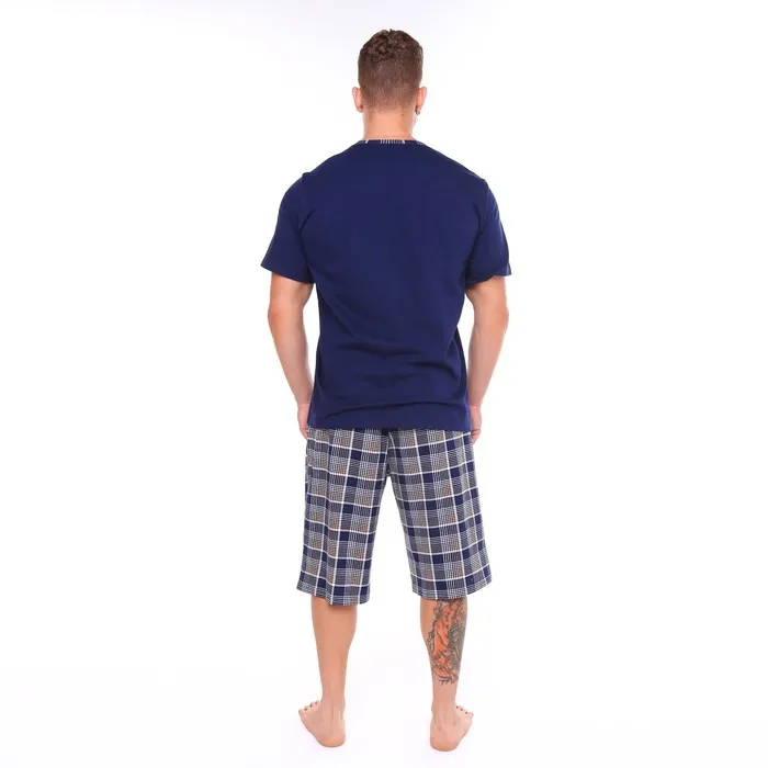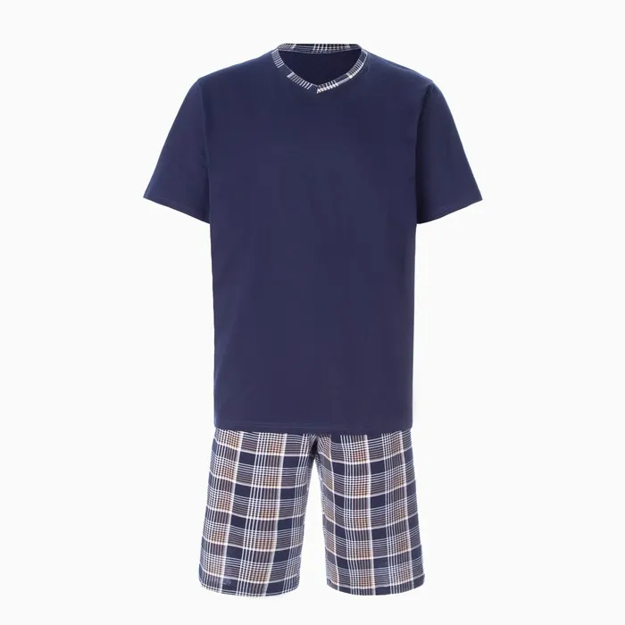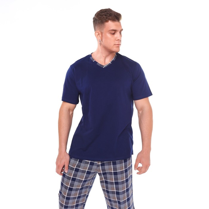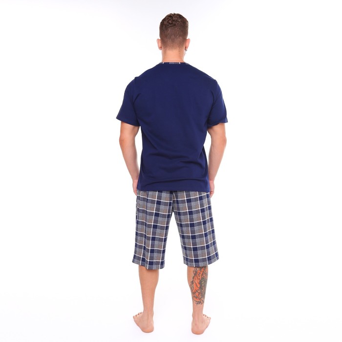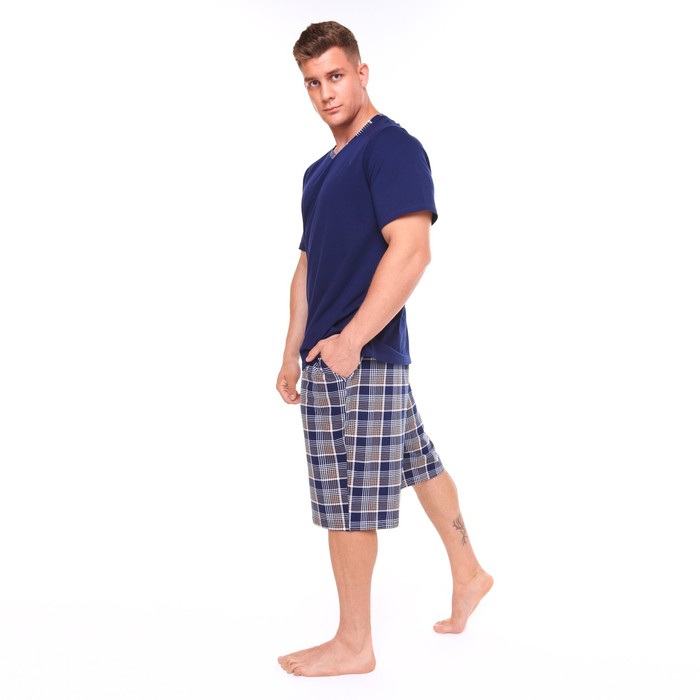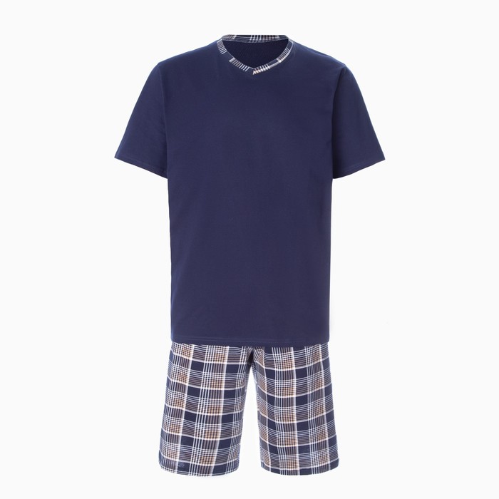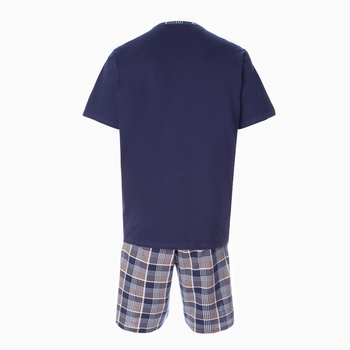 Комплект (футболка/шорты) мужской, цвет синий/клетка, размер 66