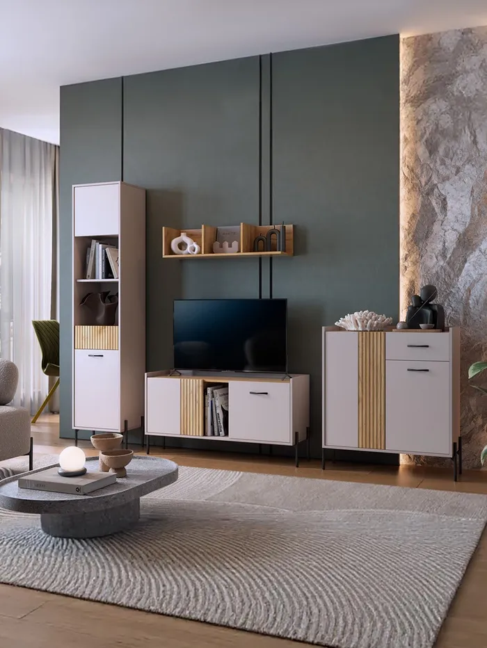 • Размещение техники: специальная ниша шириной 1255 мм идеально подойдет для установки телевизора, создавая комфортную обстановку для семейного досуга.