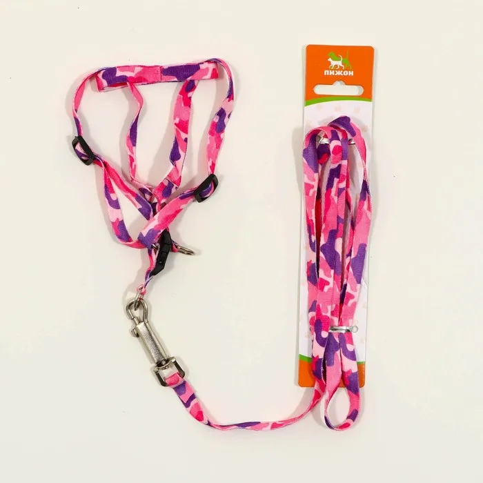 Комплект "Камуфляж", капрон, ширина 1см,шлейка 21-35 см,поводок 120 см, капрон, розов/фиолет — Характеристики
