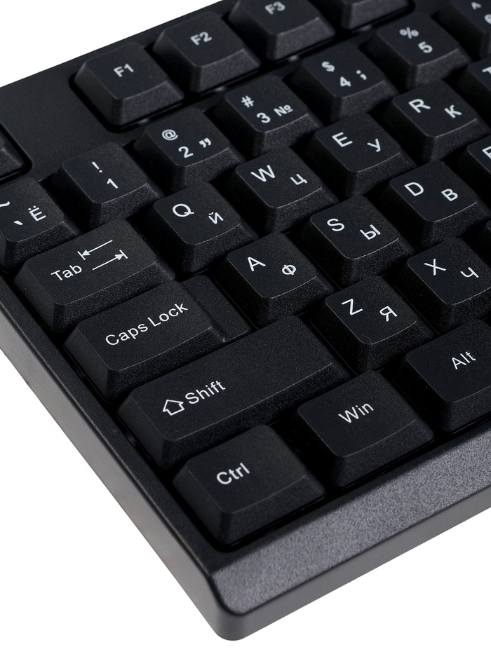 Клавиатура оснащена 105 клавишами с мембранным механизмом, обеспечивающим мягкий и тихий ход клавиш. Цифровой блок облегчает ввод числовых данных, а оптимальная раскладка снижает усталость при длительной работе. Мышь с оптическим сенсором и разрешением 1200 dpi гарантирует точное управление курсором и плавное движение по любой поверхности.