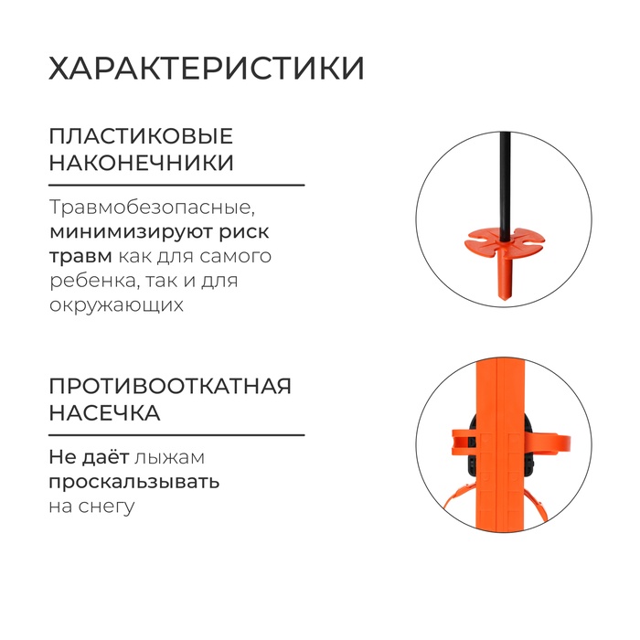 Палки имеют пластиковые травмобезопасные наконечники, это обеспечивает защиту во время катания.
