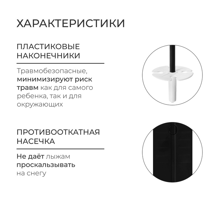 Палки имеют пластиковые травмобезопасные наконечники, это обеспечивает защиту во время катания.