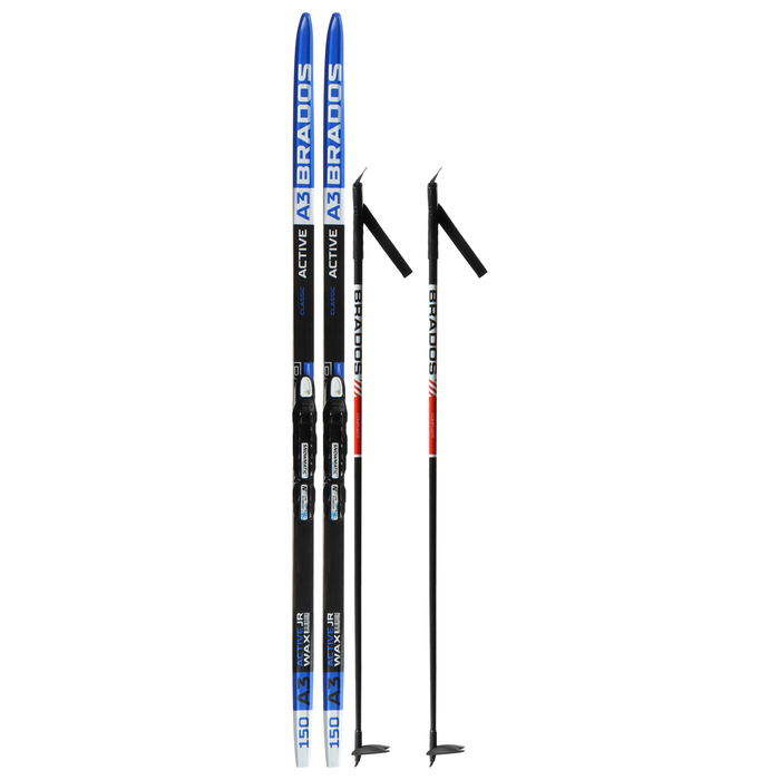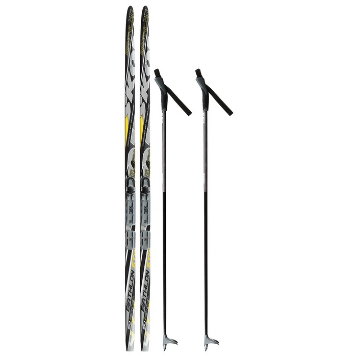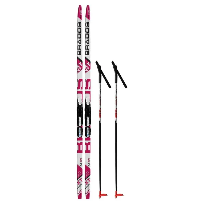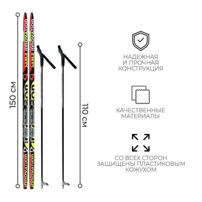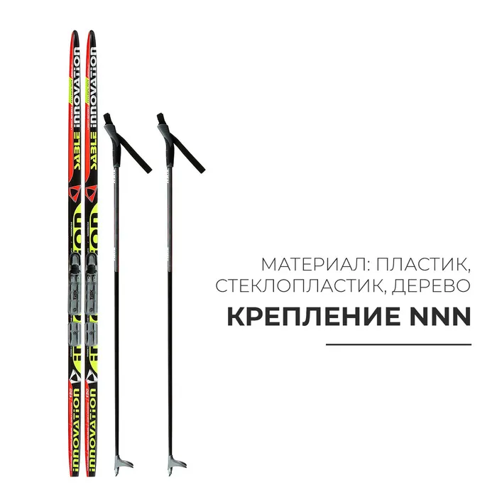 Комплект лыжный: пластиковые лыжи 150 см без насечек, стеклопластиковые палки 110 см, крепления NNN, цвета МИКС — Характеристики