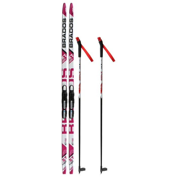 Комплект лыжный: пластиковые лыжи 150 см с насечкой, стеклопластиковые палки 110 см, крепления NNN, цвета МИКС