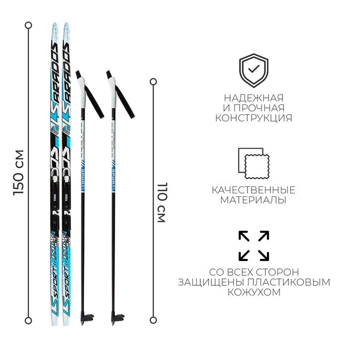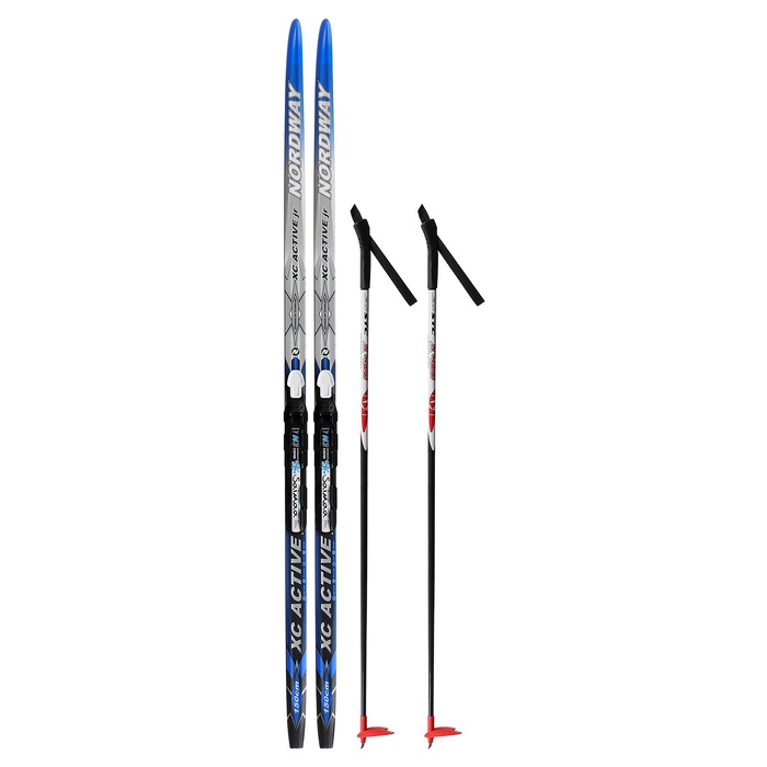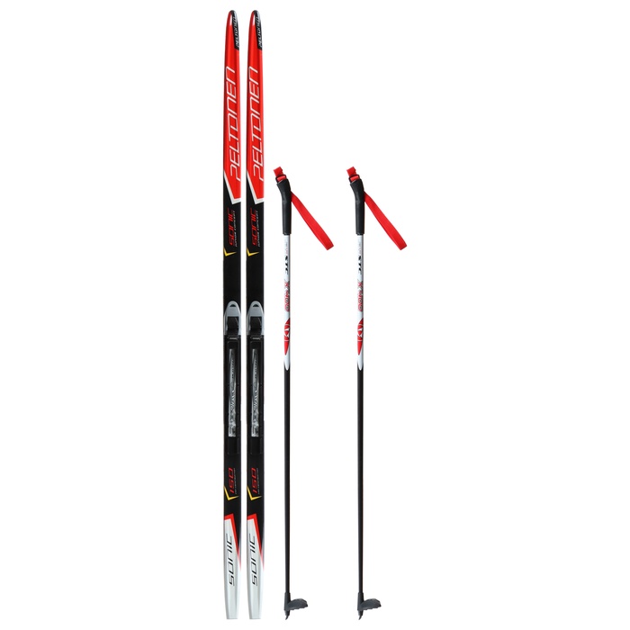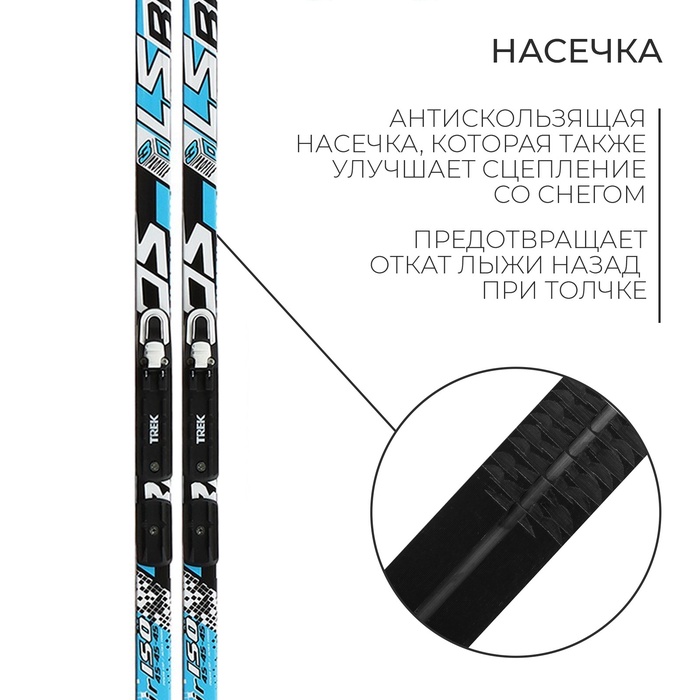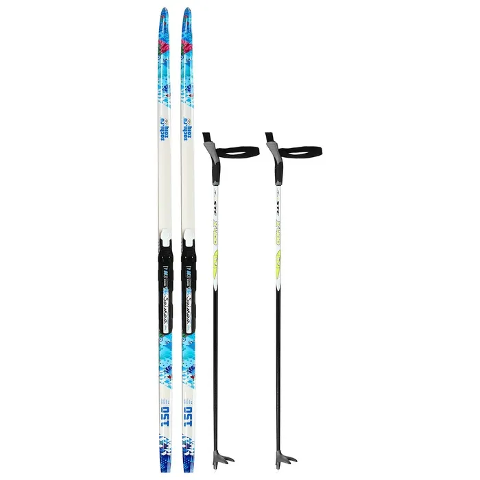 Комплект лыжный: пластиковые лыжи 150 см с насечкой, стеклопластиковые палки 110 см, крепления NNN, цвета МИКС — Характеристики