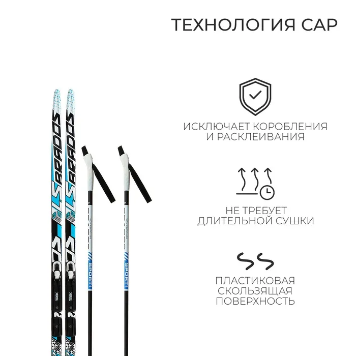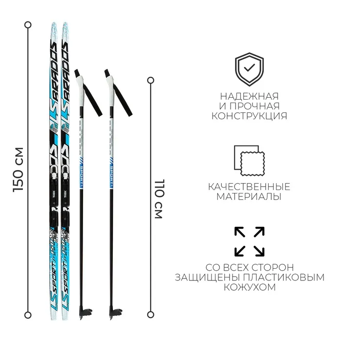 Материал лыжных палок — стеклопластик — гарантирует спортсмену надёжность и прочность всей конструкции, увеличивая срок эксплуатации. Большим плюсом в данной модели является простота подготовки, предварительная обработка не требуется, достаточно встать и поехать.