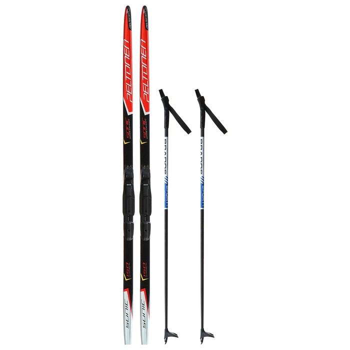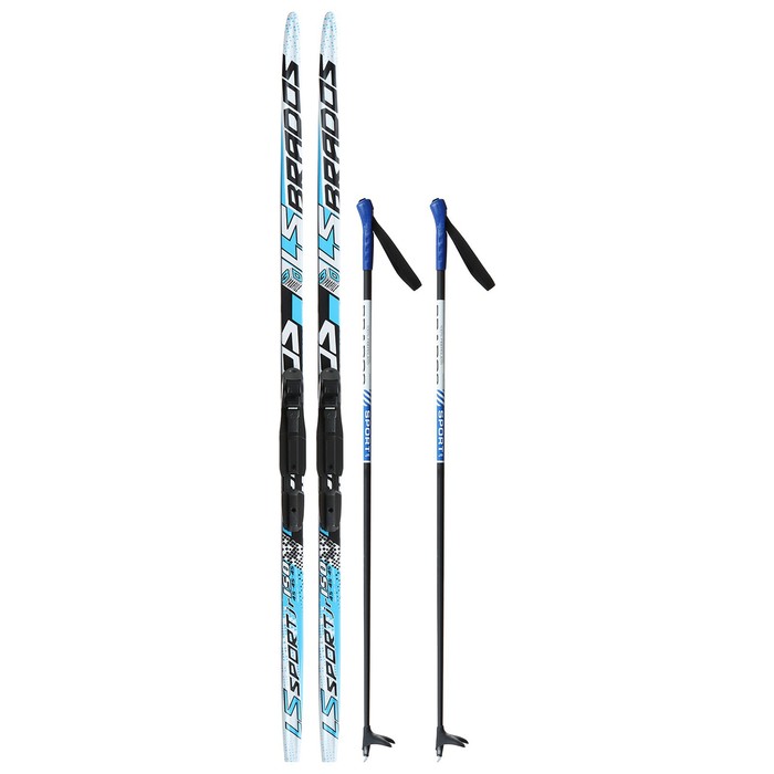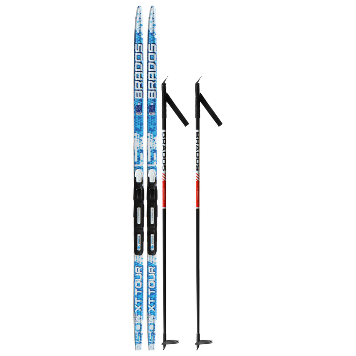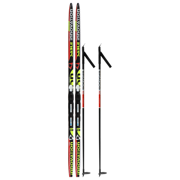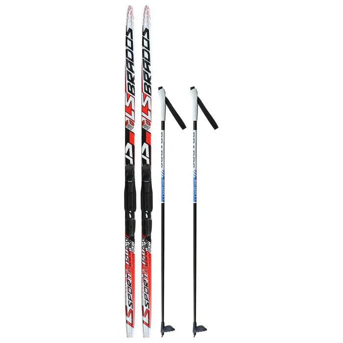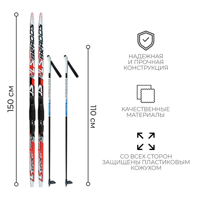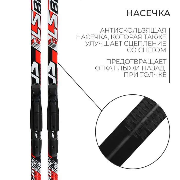 Комплект лыжный: пластиковые лыжи 150 см с насечкой, стеклопластиковые палки 110 см, крепления SNS, цвета МИКС — Характеристики