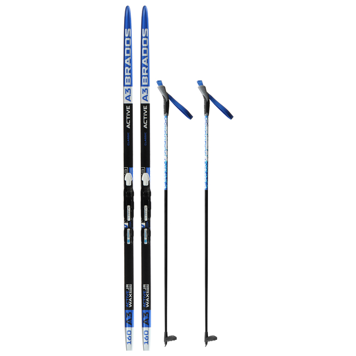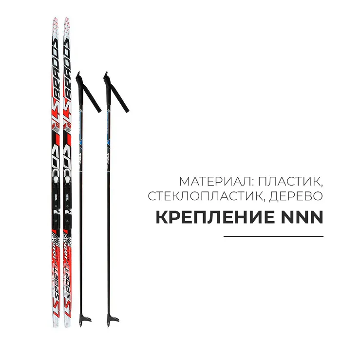 Комплект лыжный: пластиковые лыжи 160 см без насечек, стеклопластиковые палки 120 см, крепления NNN, цвета МИКС — Характеристики